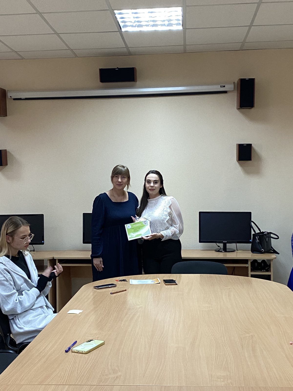 Заключительное слово было предоставлено заместителю декана по научной работе, к.п.н., доценту Никитовской Г. В. Она подчеркнула значимость подобных студенческих инициатив для профессионального становления будущих специалистов и вручила почетные грамоты наиболее активным участникам студенческого научного общества за инициативность и вклад в научную жизнь факультета: Егоровой Е.В., Мандрик В.А., Писанюк Ю.М. и Семенюк А. Ю.