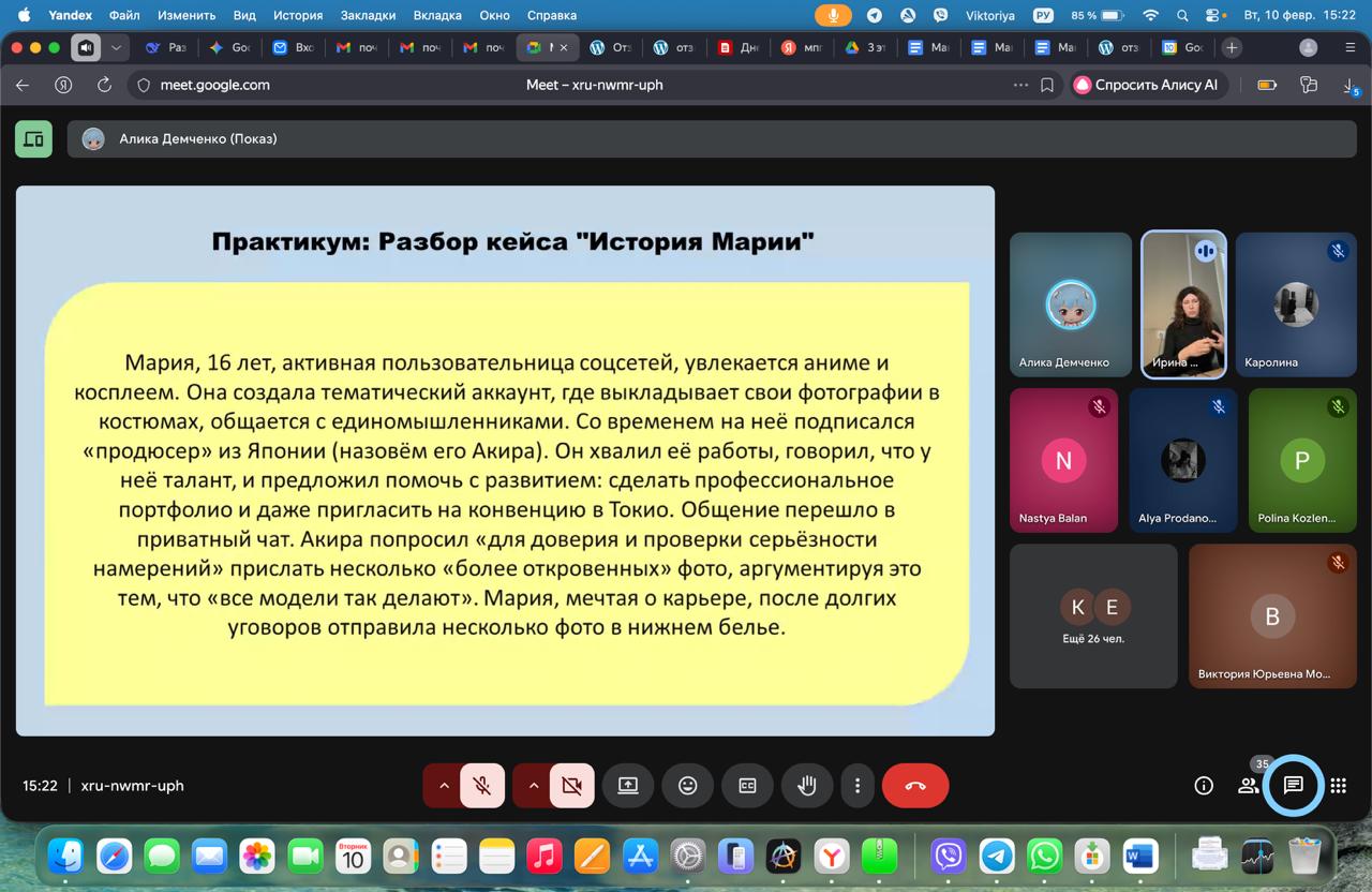 После выступлений между участниками встречи завязалась дискуссия. Студенты обсуждали актуальность проблематики и делились личным опытом борьбы с угрозами психологической безопасности личности.